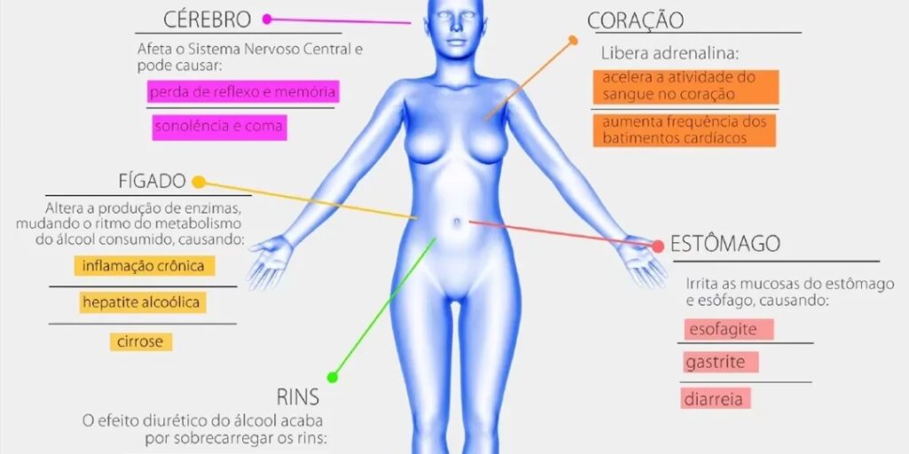 O consumo crônico e excessivo de álcool, especialmente quando o consumo diário excede 60g (equivalente a cerca de 5 a 6 doses de bebidas destiladas ou mais de uma garrafa de vinho), desencadeia uma série de consequências gravíssimas que afetam praticamente todos os sistemas do corpo, resultando em doenças crônicas e irreversíveis. As principais incluem: