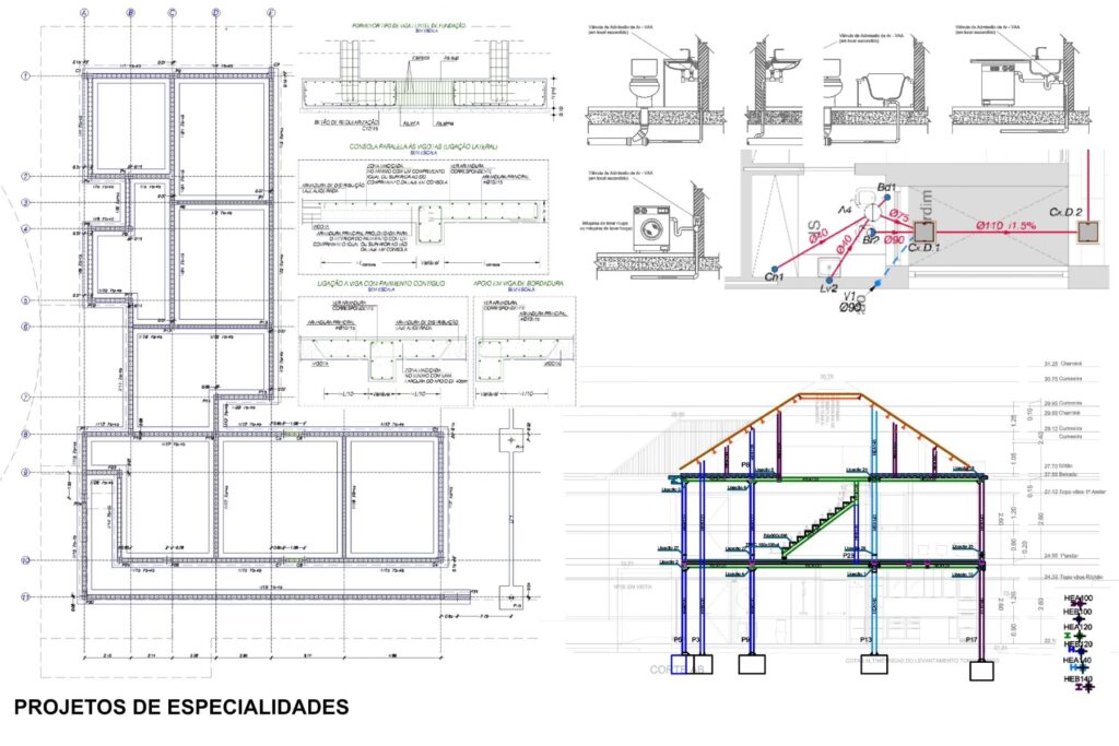 - Estudos de Especialidade: Embora sejam projetos complementares, o projeto de arquitetura serve de base para os estudos de especialidade (estrutura, águas e esgotos, eletricidade, gás, térmica, acústica, etc.), que são coordenados pelo arquiteto.