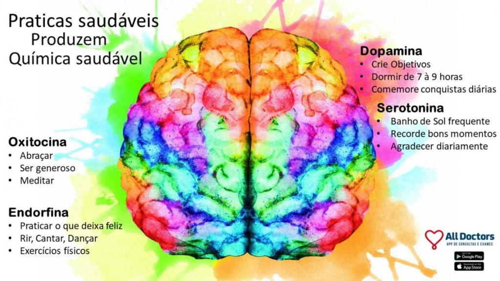 | Endorfina | Analgésico natural, euforia, alívio do estresse. | Rir, cantar, dançar, exercícios físicos. | Pimentas (piperina), chocolate amargo. |