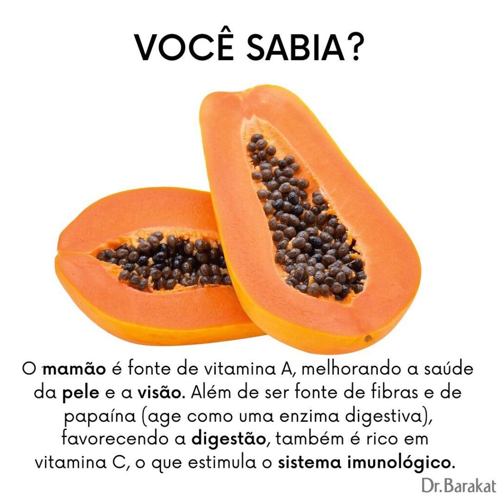 O mamão é uma potência nutricional. Ele fornece uma vasta gama de vitaminas e minerais essenciais, incluindo vitamina A (na forma de betacaroteno e licopeno), vitamina C, vitamina E, vitaminas do complexo B, cálcio, ferro, potássio e fibras. Essa composição rica o torna um alimento completo para a saúde geral do corpo.